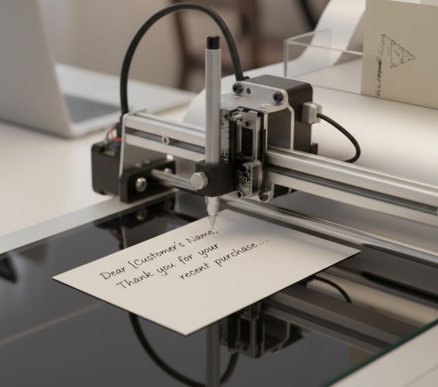 The system is designed to connect with software workflows to automate handwritten communication tasks.